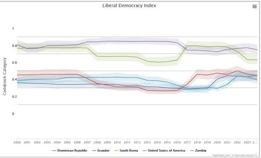 Figure 2: Liberal Democracy: Dominican Republic, Ecuador, South Korea, US, Zambia.